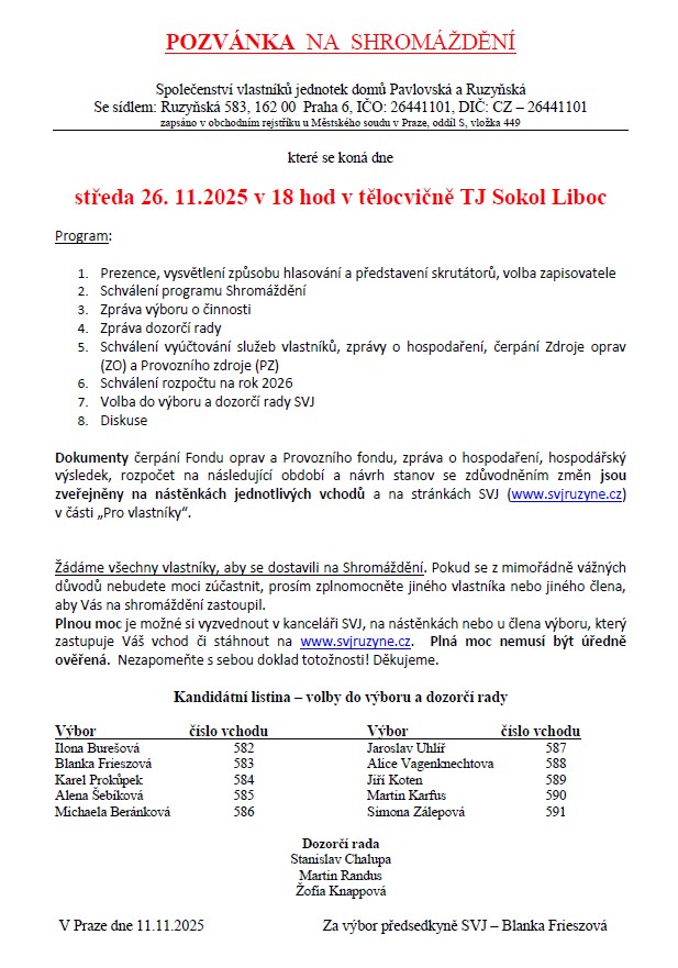 SHROMÁŽDĚNÍ našeho svj se bude konat ve STŘEDU 26.11. v 18 hodin v tělocvičně TJ Sokol.